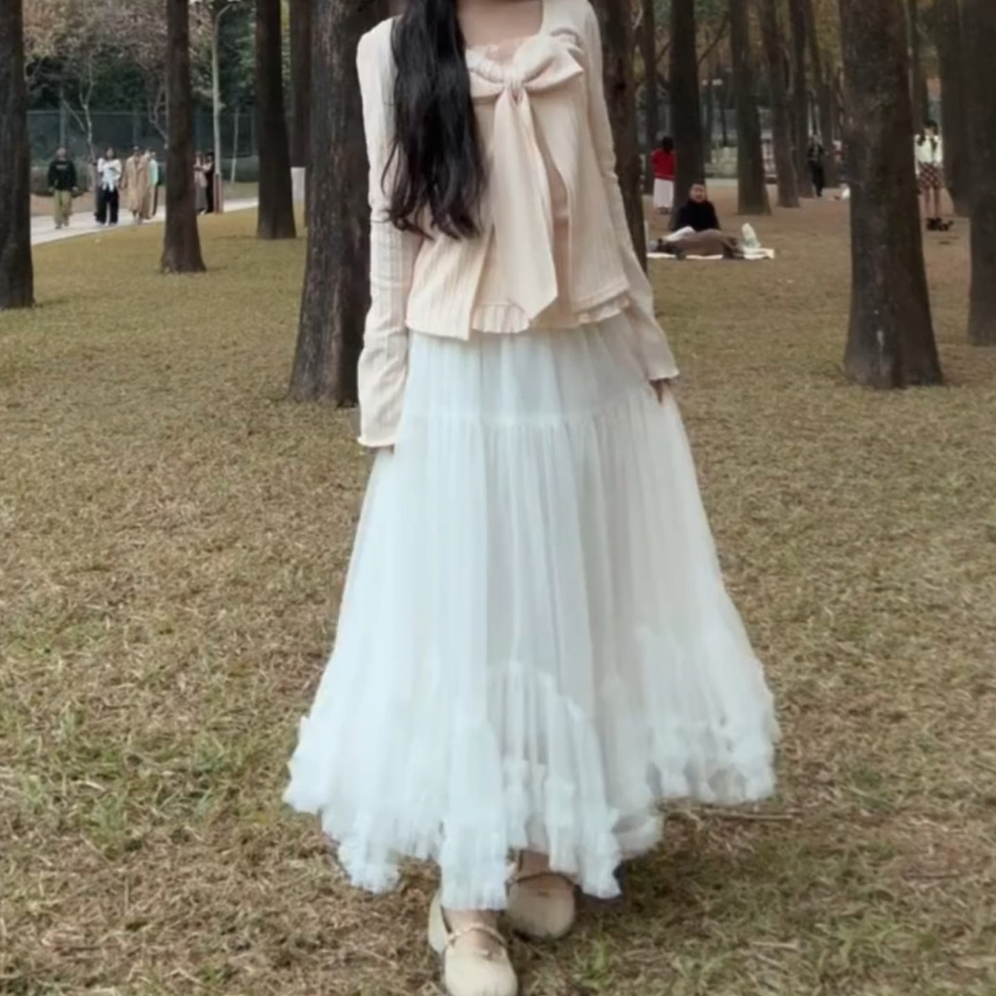 韩系气质纱裙蓬蓬裙木耳边精致减龄显瘦网纱半身裙中长款2026新款