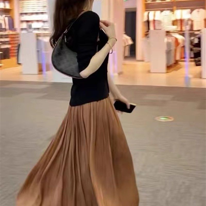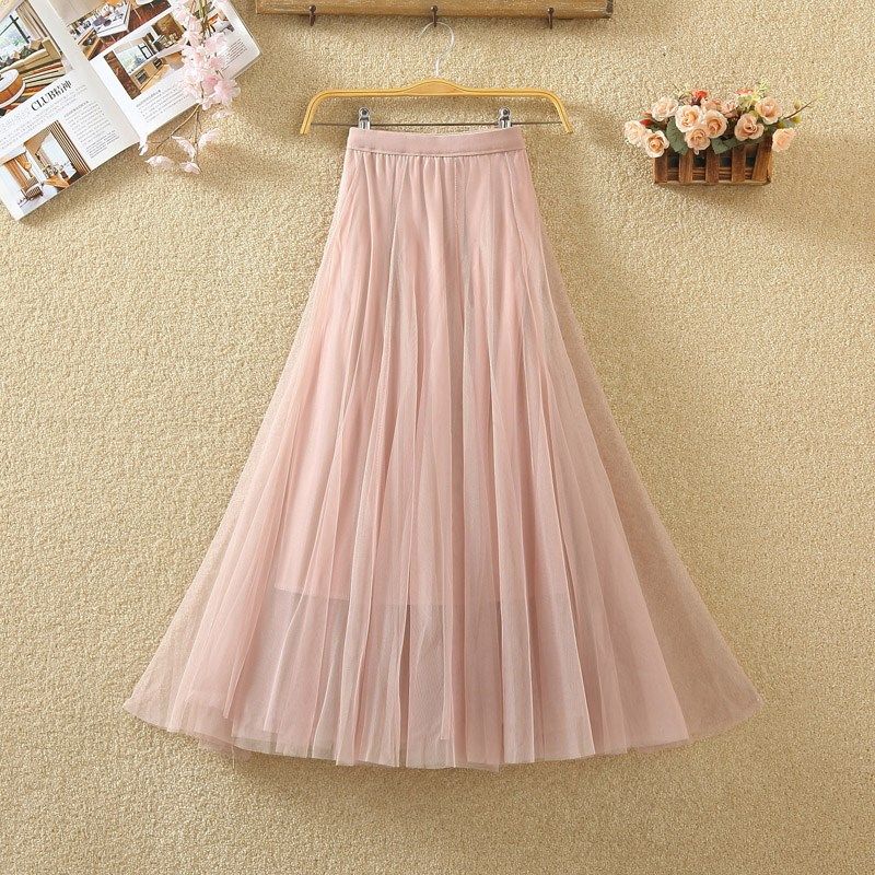 显瘦网纱半身裙中长款女亮丝纱裙百搭高腰蓬蓬百褶裙春夏新款2025