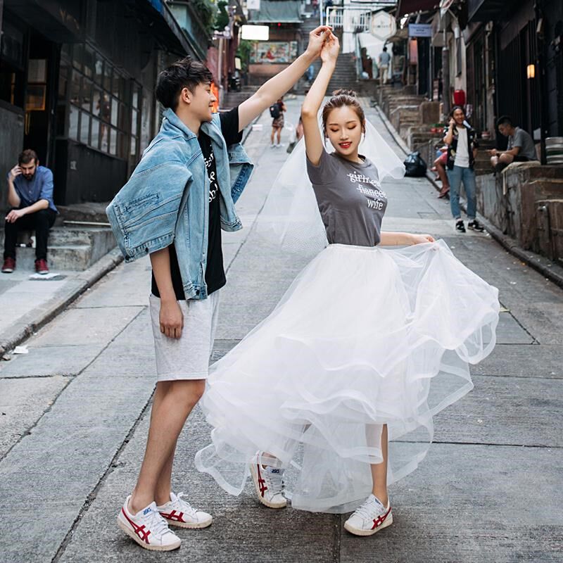 网纱半身裙中长款大摆蓬蓬裙高腰a字旅拍领证轻婚纱裙子仙女森系