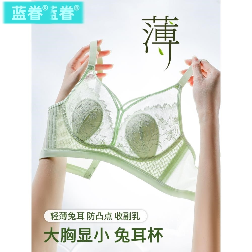 内衣女薄款大胸显小胸聚拢收副乳防下垂夏季兔耳朵超薄大码文胸罩