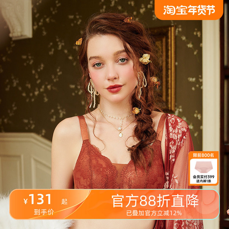 【刺绣鎏金叶】内衣女法式蕾丝性感透气上托大胸显小超薄大码文胸