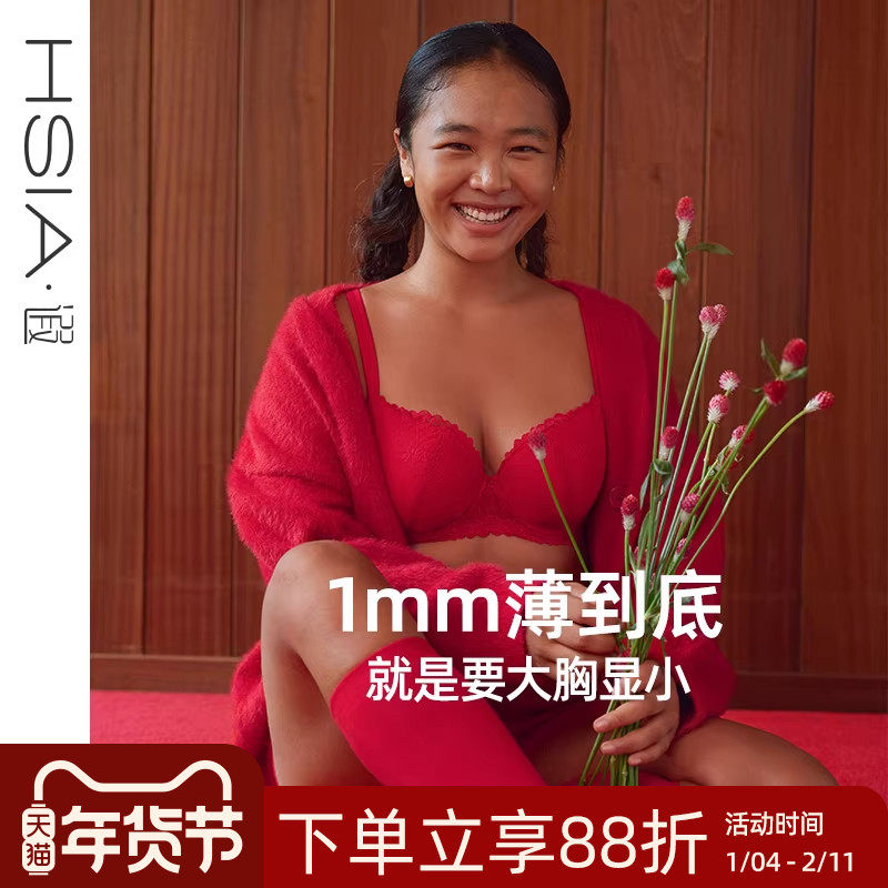 【小风荷】遐1mm超薄全罩杯大码文胸罩大胸显小本命年红色内衣女