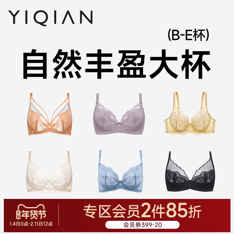 怡倩【自然显瘦大杯】内衣女薄款大胸显小防下垂胸罩超薄大码文胸