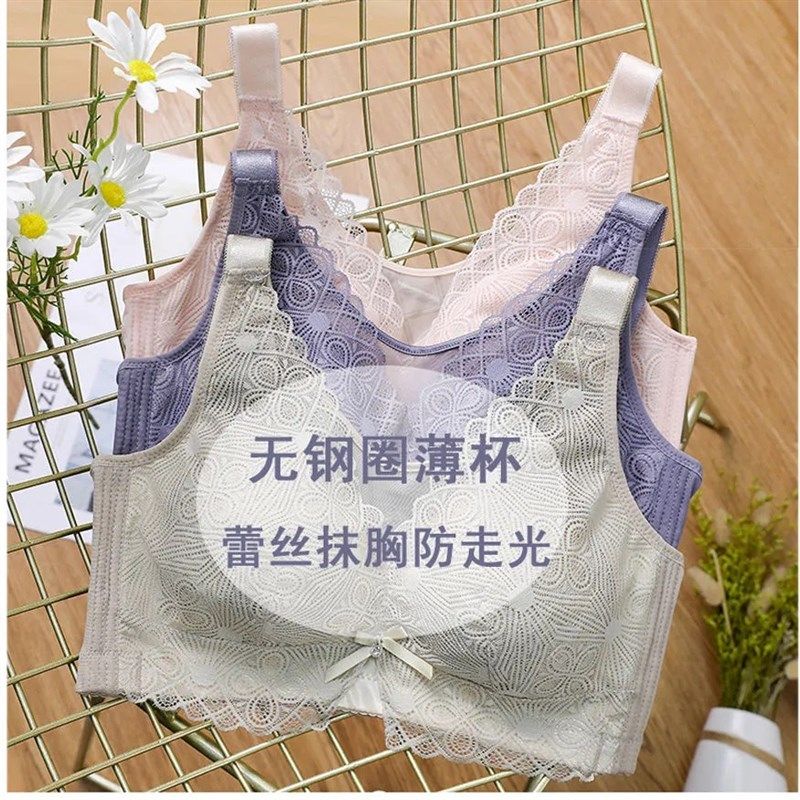 超薄大码文胸胖mm聚拢薄款性感蕾丝无钢圈内衣抹胸透气收副乳胸罩