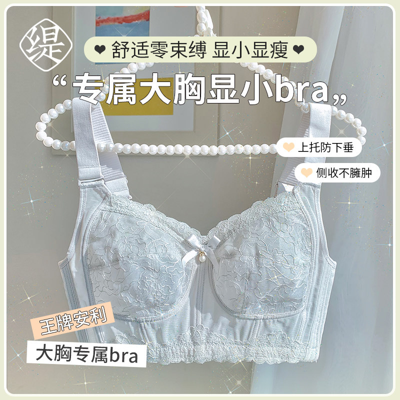女士内衣大胸显小胸无钢圈蕾丝薄款聚拢收副乳全罩杯超薄大码文胸
