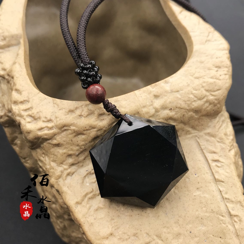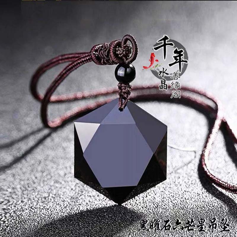 2026跨境天然黑曜石六芒星吊坠 时尚通勤天然几何体水晶六芒星情