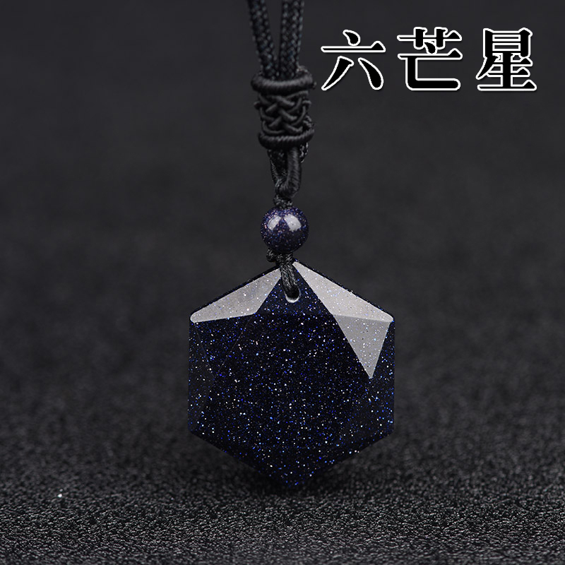 仿黑曜石六芒星吊坠蓝砂石项链男士星空石水晶挂坠饰品潮男女玛瑙