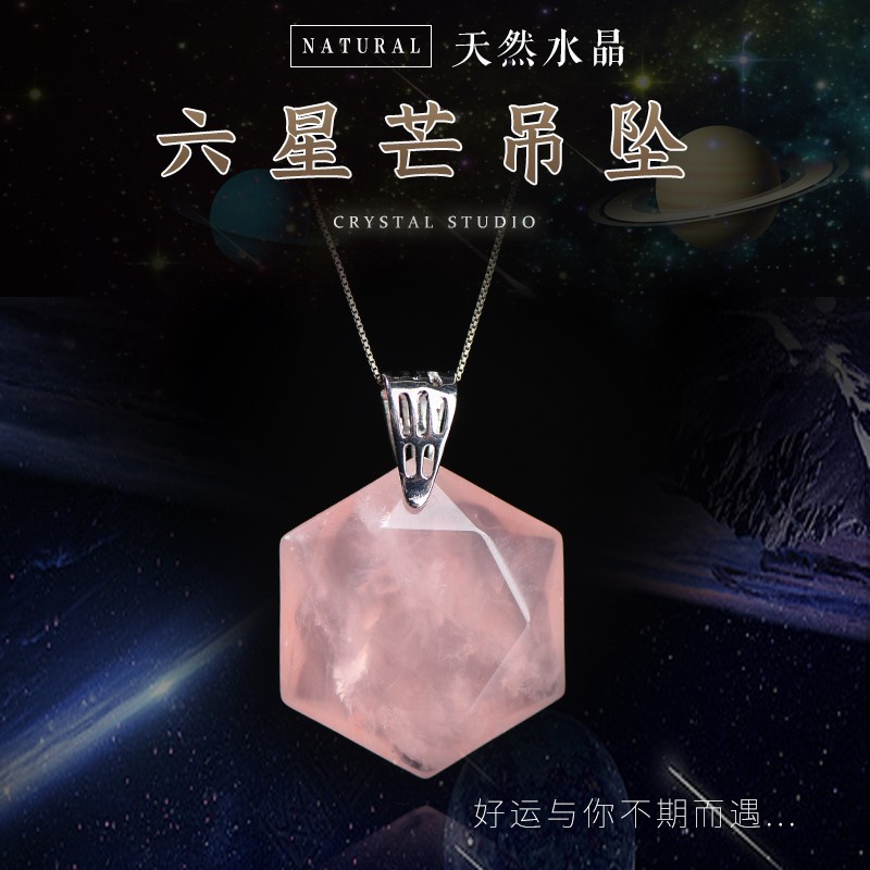 天然黑曜石白水晶粉晶紫水晶虎眼石黄水晶青金石六芒星吊坠男女坠