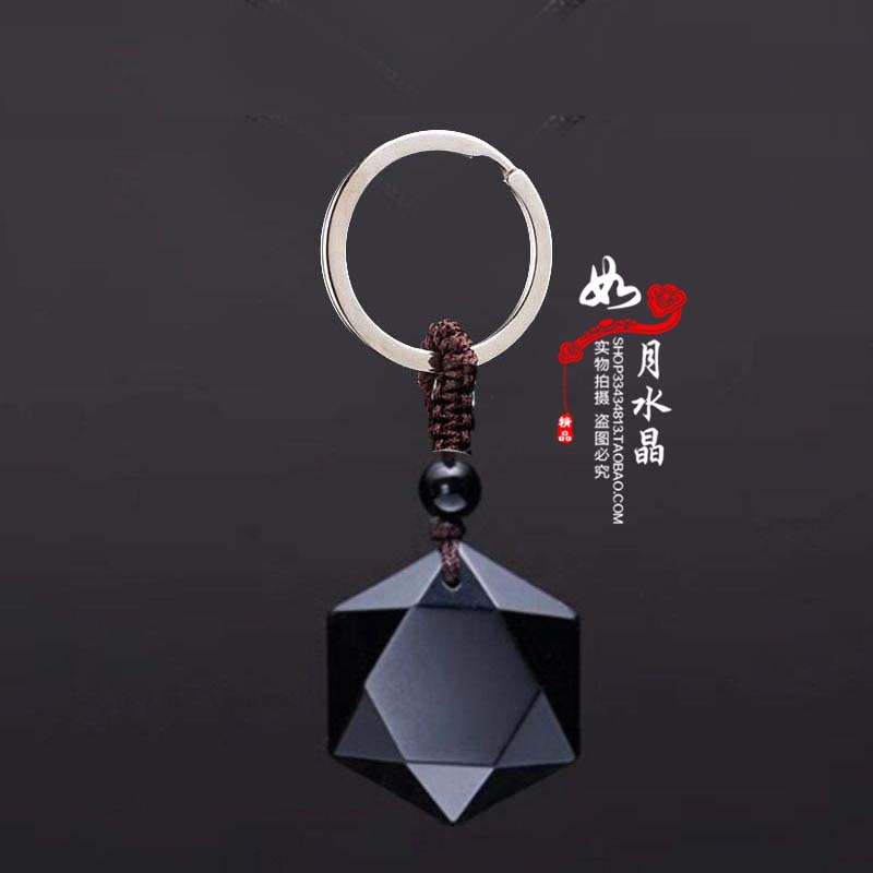 2026年天然黑曜石六芒星吊坠灵摆挂饰星空石挂件招财运转钥匙扣
