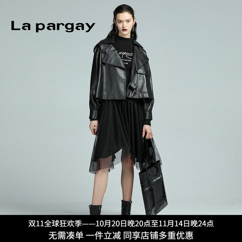 Lapargay纳帕佳2023新款女装冬季中长款两件式拼接连衣裙网纱长裙