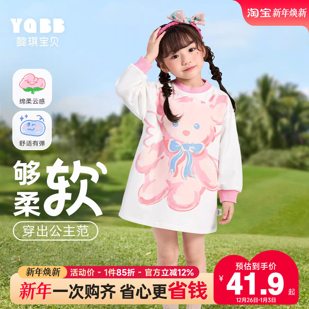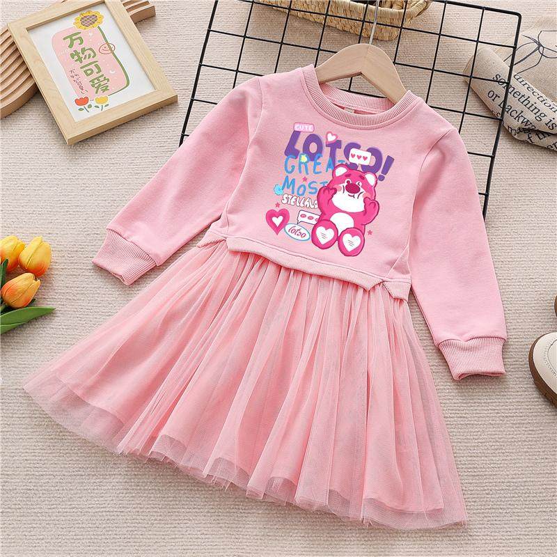 女童春秋款连衣裙2025新款儿童长袖秋季卫衣裙宝宝洋气草莓熊衣服