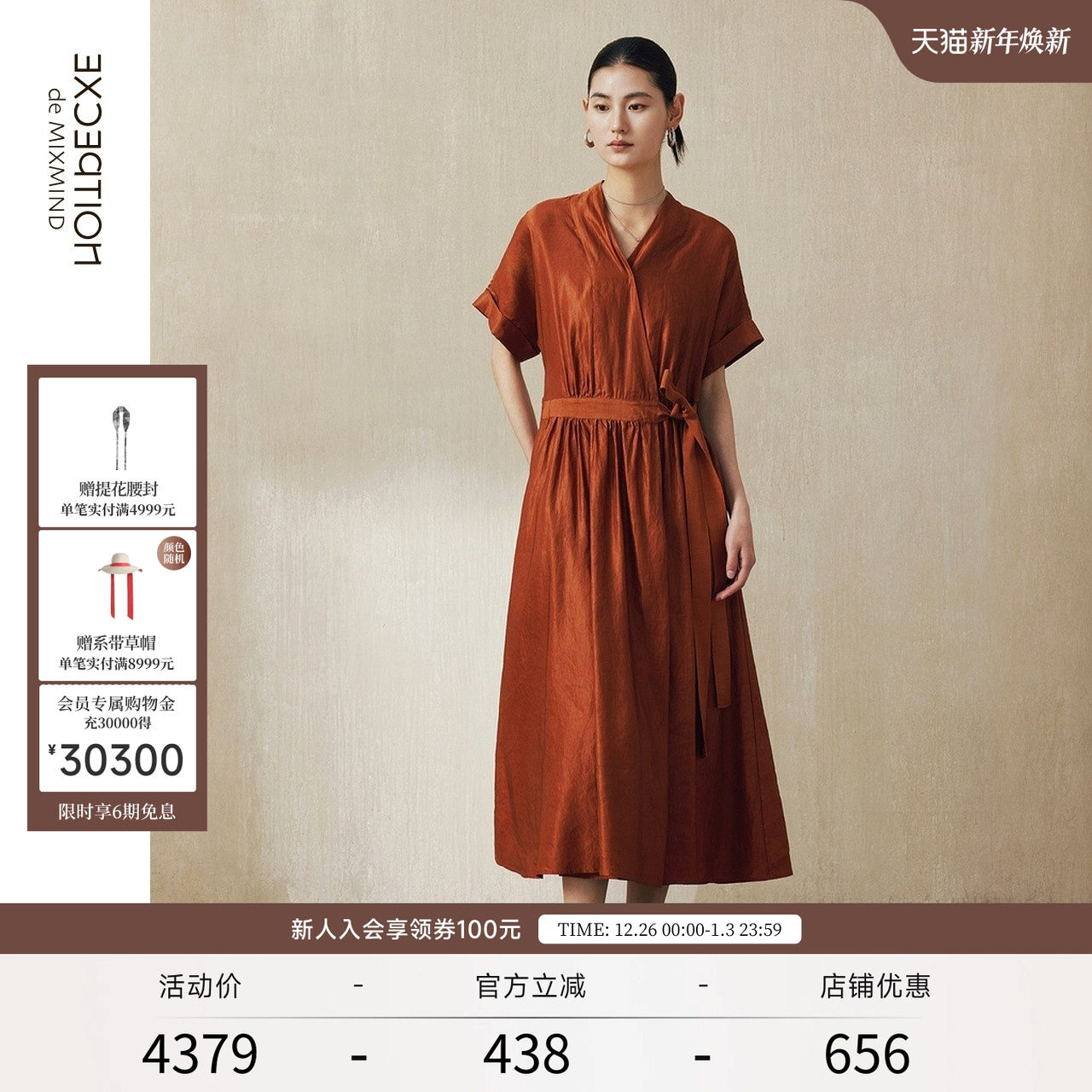 EXCEPTION例外女装春秋款连衣裙丝麻打褶设计气质裙子女高级感