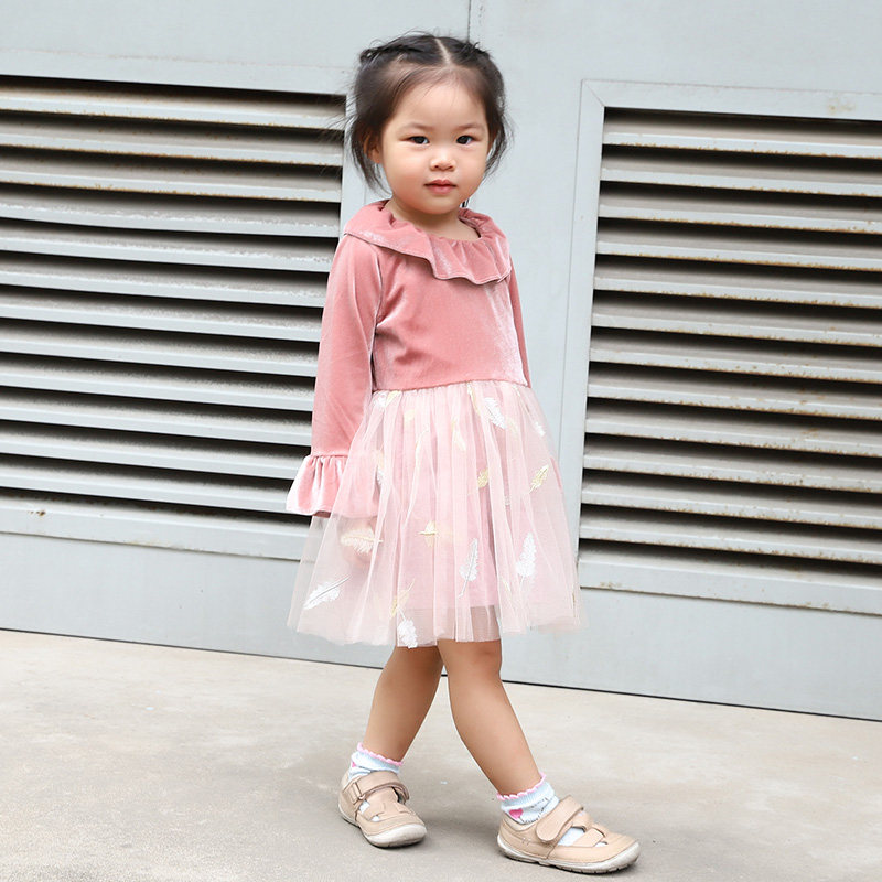 童装云儿宝贝女童丝绒网纱裙宝宝春秋款连衣裙公主裙 9-18个月