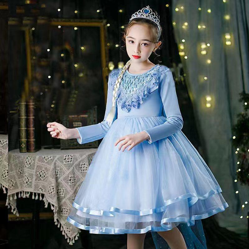 女童春秋款连衣裙冰雪奇缘艾莎公主裙儿童爱沙安娜裙子女宝宝衣服