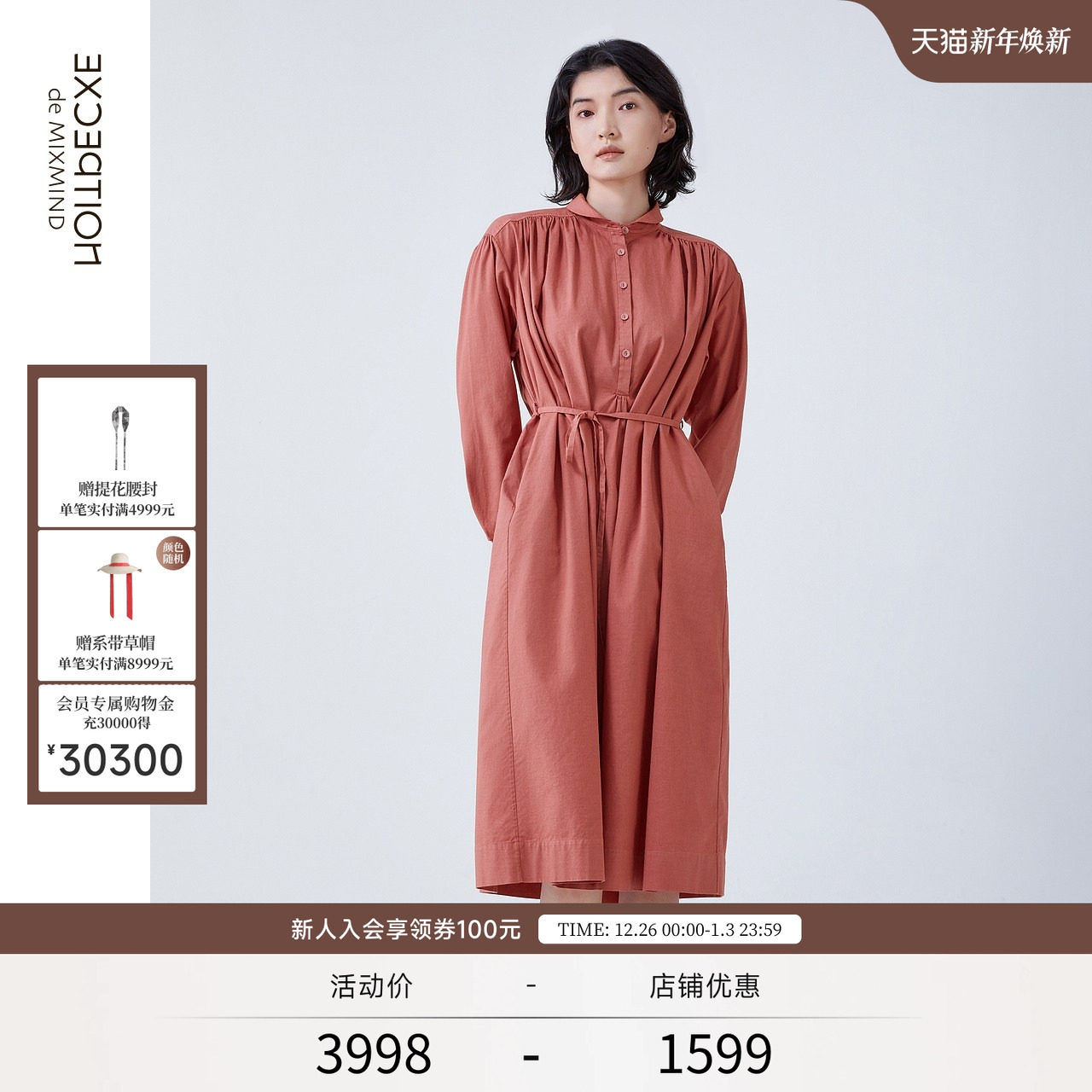 EXCEPTION例外女装春秋款连衣裙H型半门襟设计翻领系带裙子中长裙