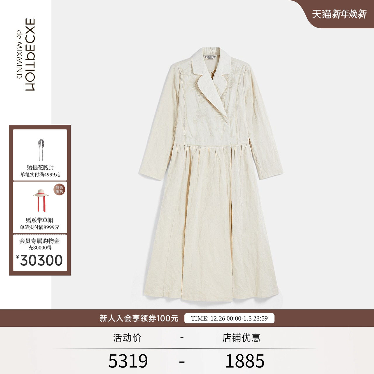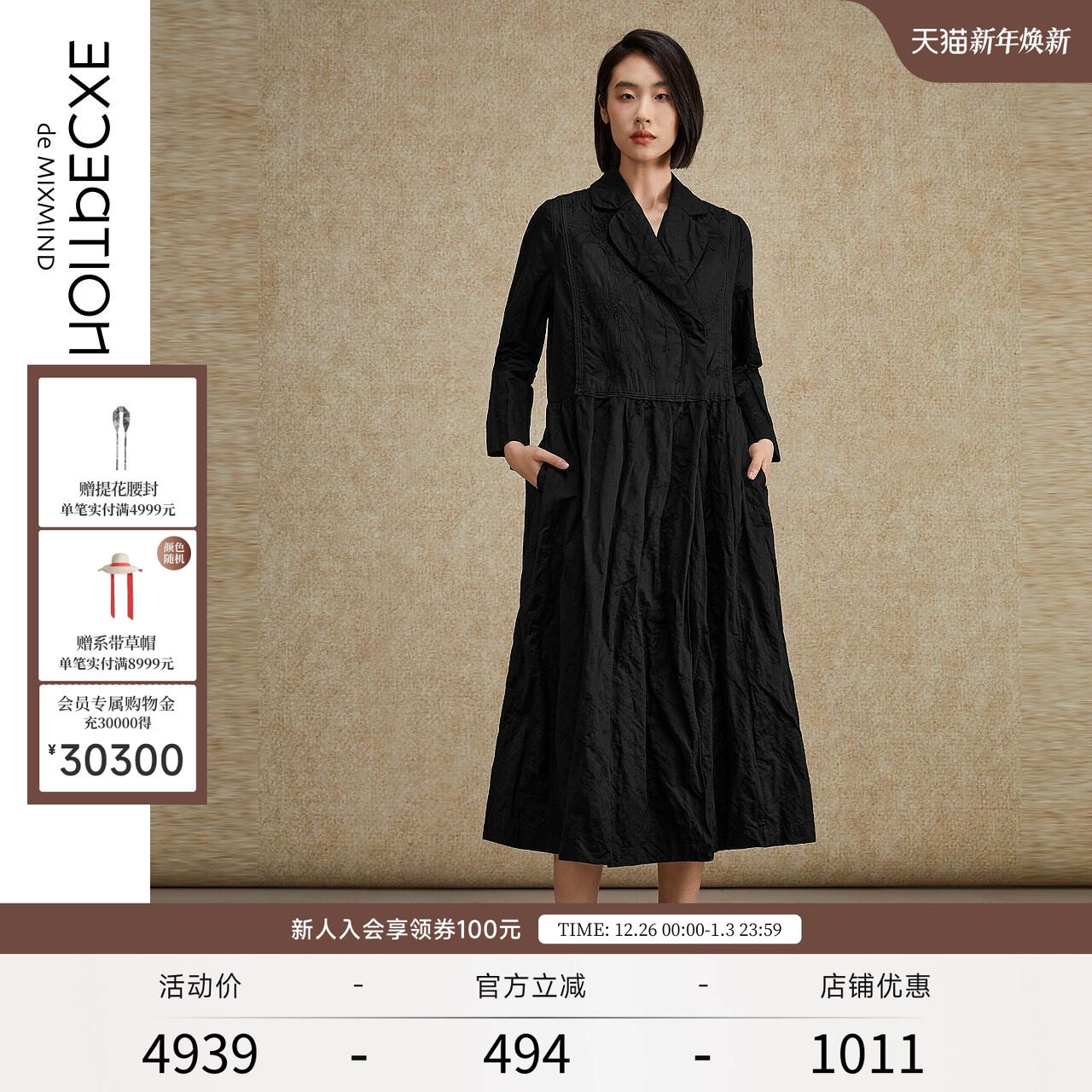 EXCEPTION例外女装春秋款连衣裙缎面金属棉绣花宽松腰风衣裙子女