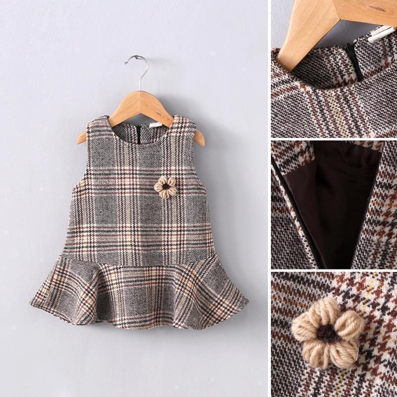 女童背心裙春秋款连衣裙新款毛呢洋气公主连衣裙女孩格子儿童裙子