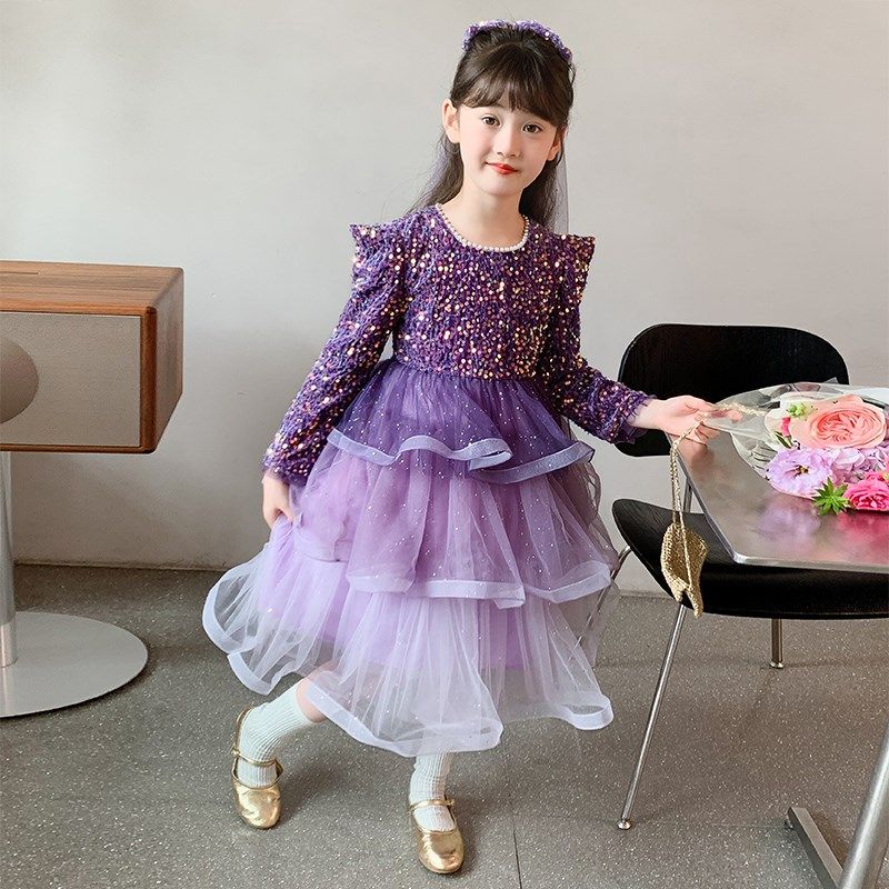 高端女童公主裙春秋款连衣裙2024新款儿童洋气亮片生日礼服蓬蓬裙