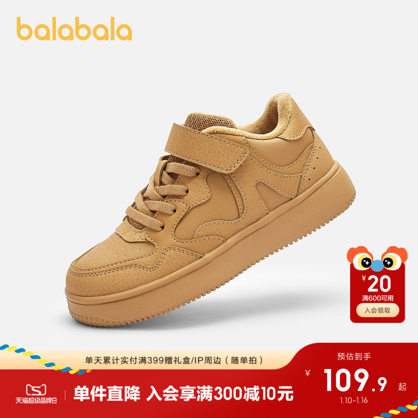 巴拉巴拉童鞋儿童板鞋男童鞋小白鞋运动鞋女童2025新秋冬鞋子加绒
