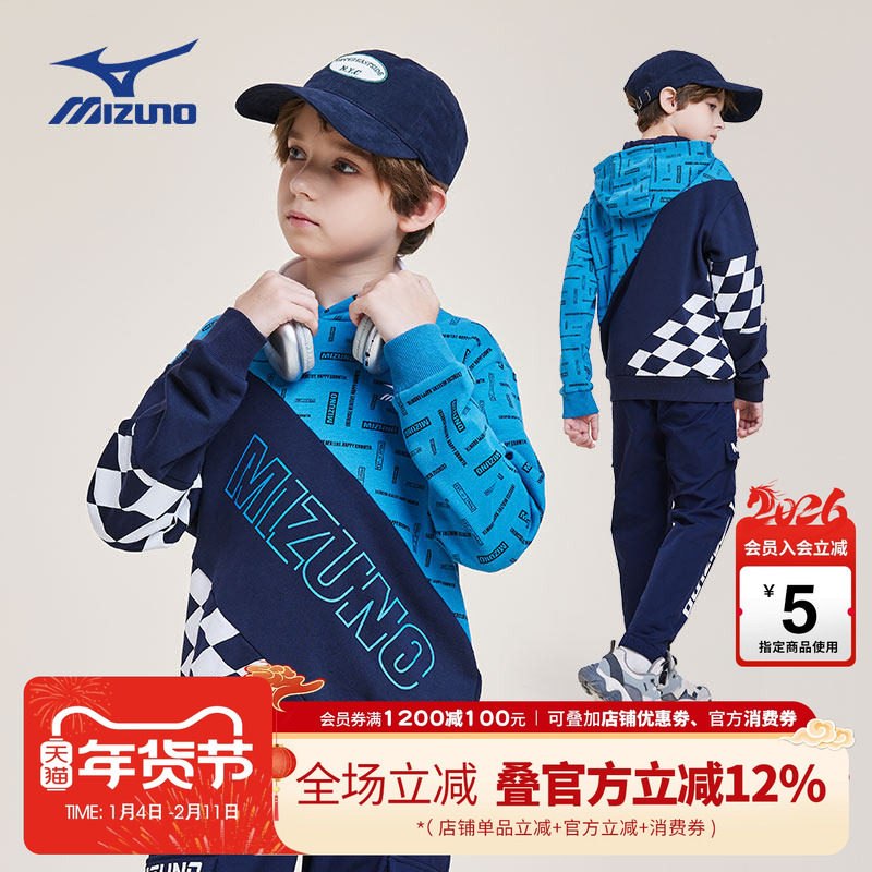 Mizuno美津浓儿童卫衣连帽套头拼色舒适休闲时尚百搭潮流男中大童