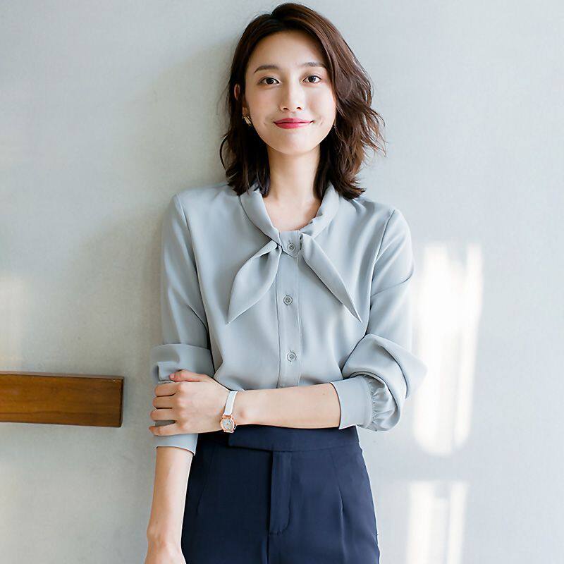 - 春秋雪纺长袖女衬衣