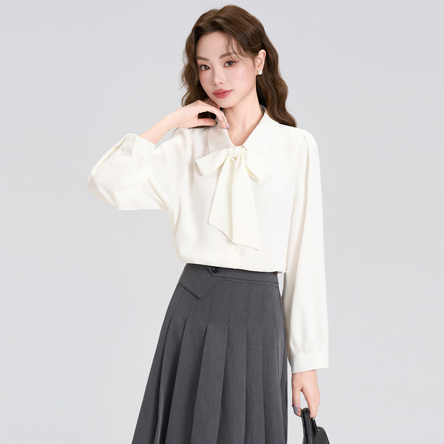 - 蝴蝶结领衬衫女