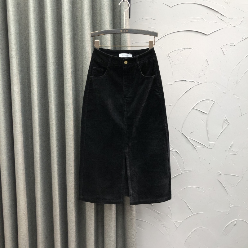 黑色高腰灯芯绒半身裙女2025秋季时尚宽松休闲开叉减龄A字中长裙