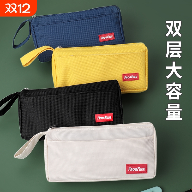 大容量帆布笔袋小学生男孩子简约ins日系铅笔盒文具盒初高中生高颜值铅笔袋男生女学生2022新款双层收纳防水