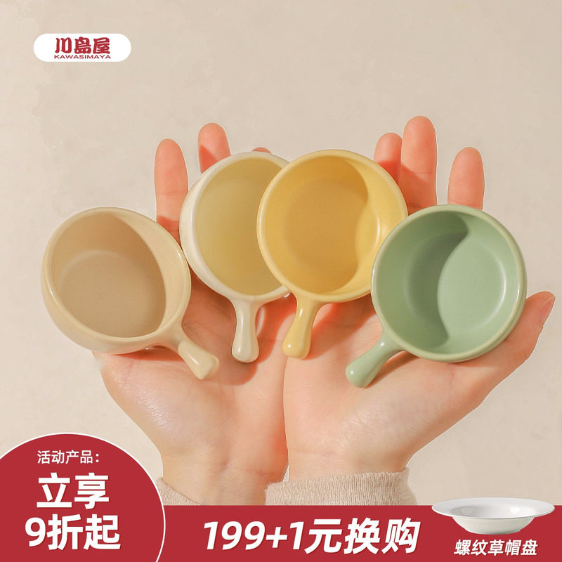 萌宠卡通陶瓷蘸料碟火锅手捏单柄调味碟可爱家用调料酱油醋小碟子