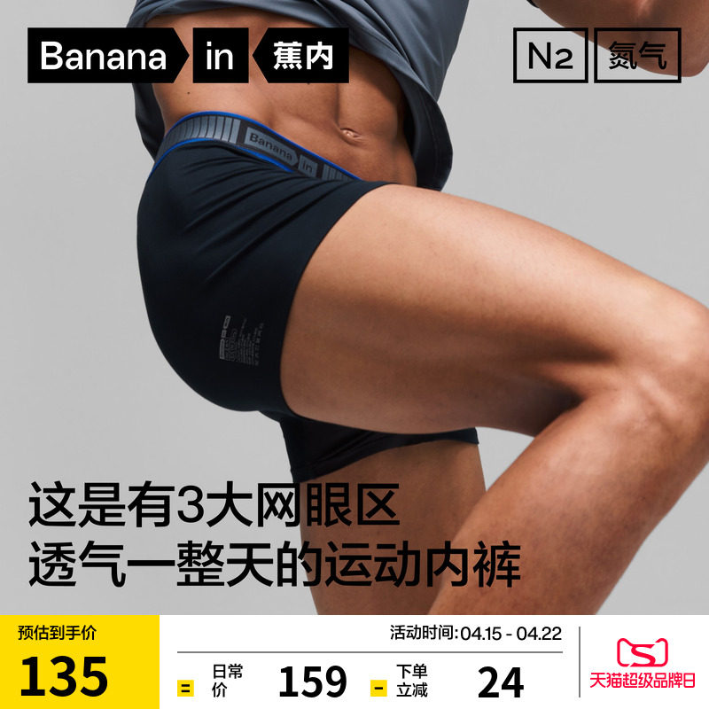 3件|蕉内氮气506Dry男士运动速干内裤透气网眼冰丝莫代尔四角短裤