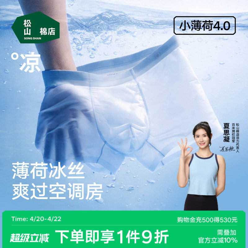 松山棉店小薄荷清爽男士冰丝无痕内裤青少年轻薄平角裤短裤四角裤