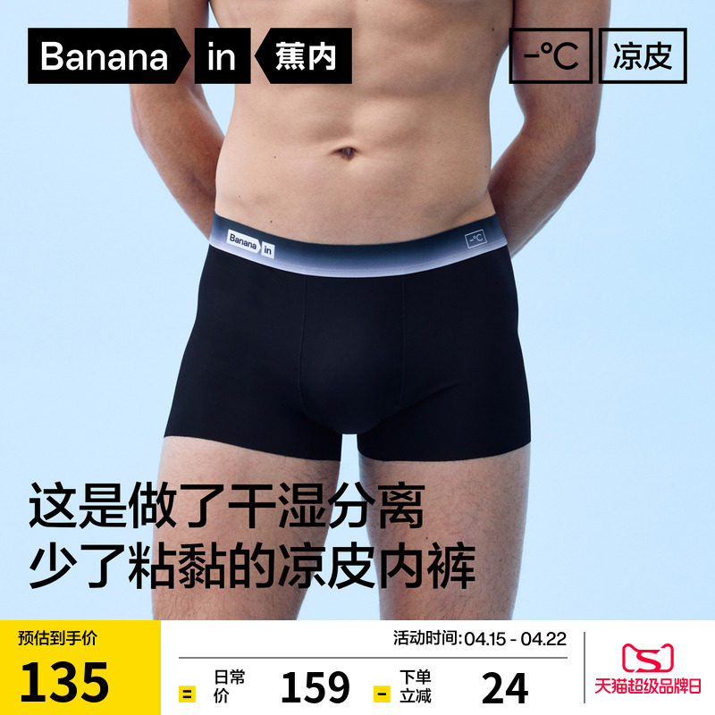 3件|蕉内凉皮511CA无痕冰丝男士内裤平角透气裤衩无缝裸感短裤