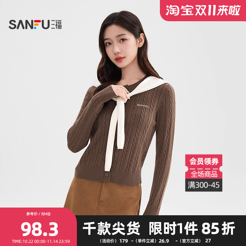 三福小众设计复古毛衣女2025冬季开衫外套披肩麻花上衣女装509097