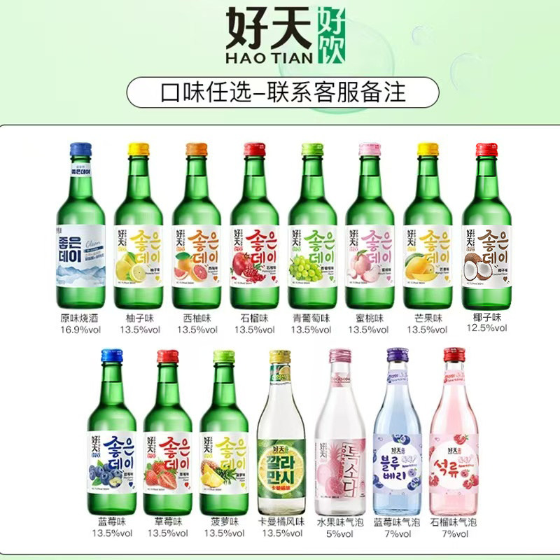 好天好饮烧酒韩国进口酒水葡萄蜜桃蓝莓果味清酒韩式女士低度酒小