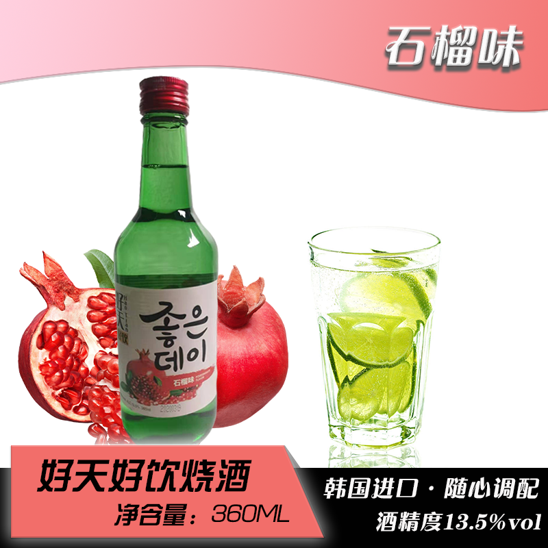 韩国烧酒好天好饮果味烧酒韩剧酒原装进口烧酒360ml(石榴味)