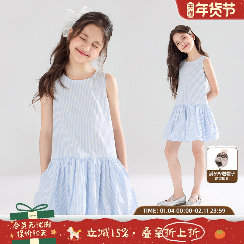 【星星海岛】全棉色织条纹 海星烫钻花苞连衣裙度假裙女童夏新款