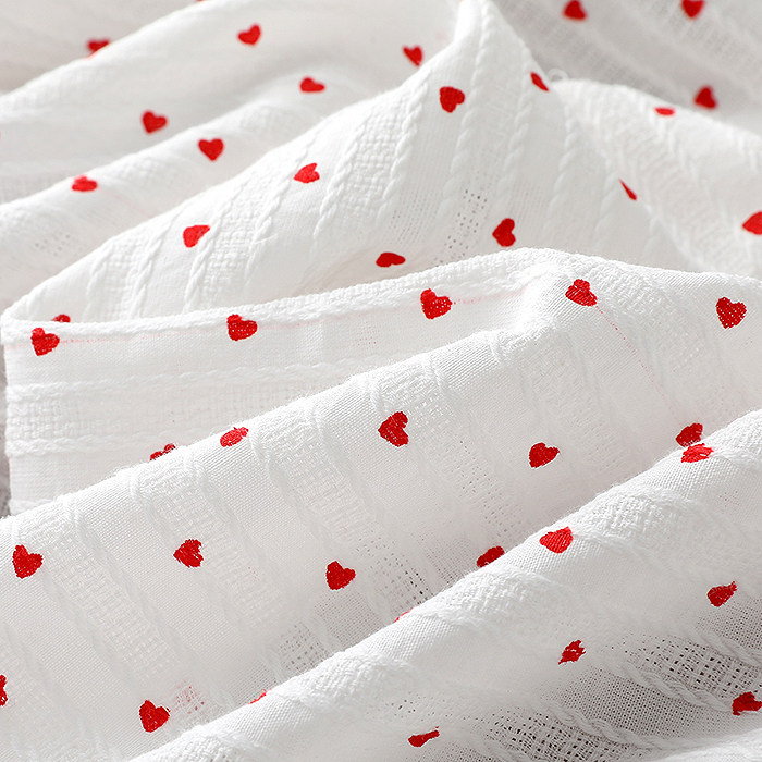 纯棉条纹提花布日韩小爱心印花面料衬衫连衣裙儿童服装DIY布料