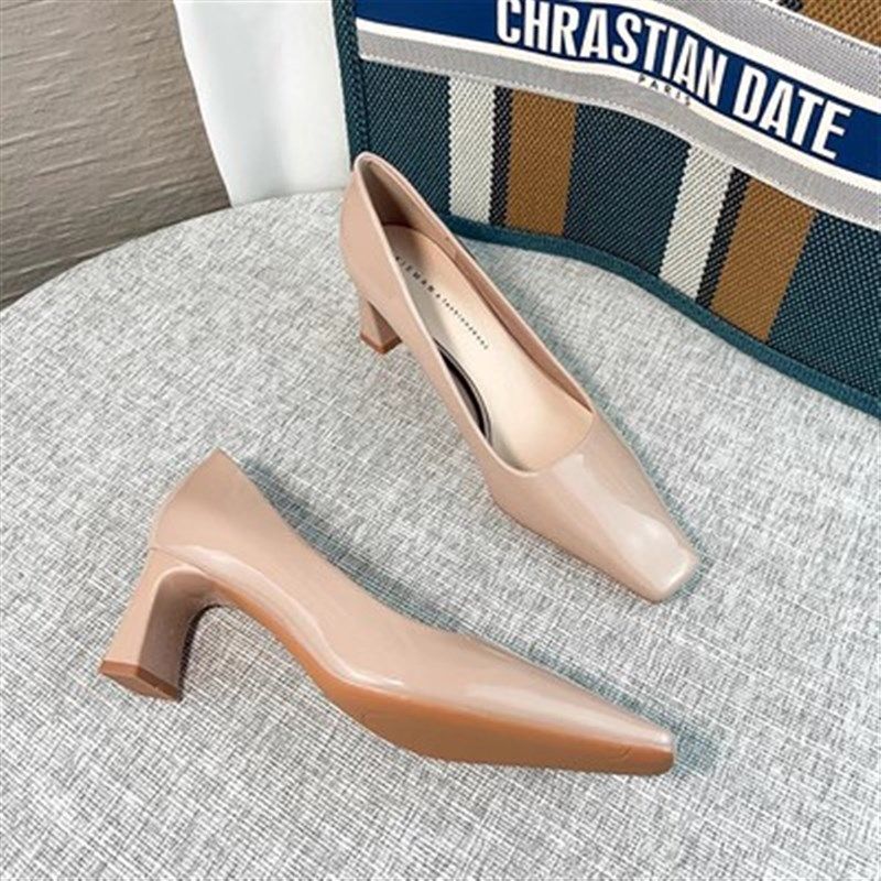 裸粉色高跟鞋粗跟绝美不累脚小众方头浅口漆皮2025新款职业工作鞋