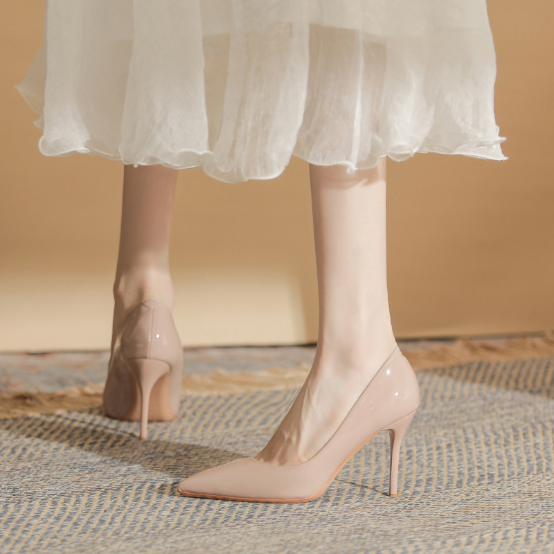 2025年春秋新款裸粉色高跟鞋女名媛漆皮细跟性感尖头气质浅口单鞋