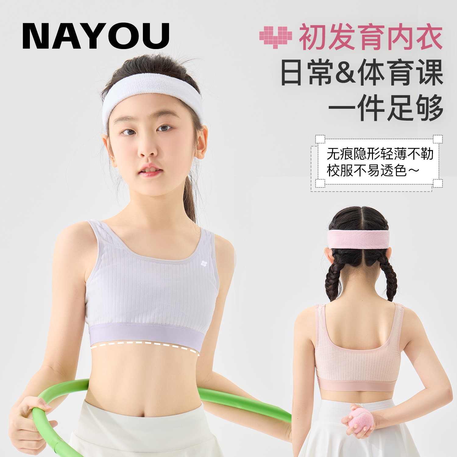 纳柚2025女童发育内衣儿童发育期一阶段少女防凸点无痕文胸纯棉