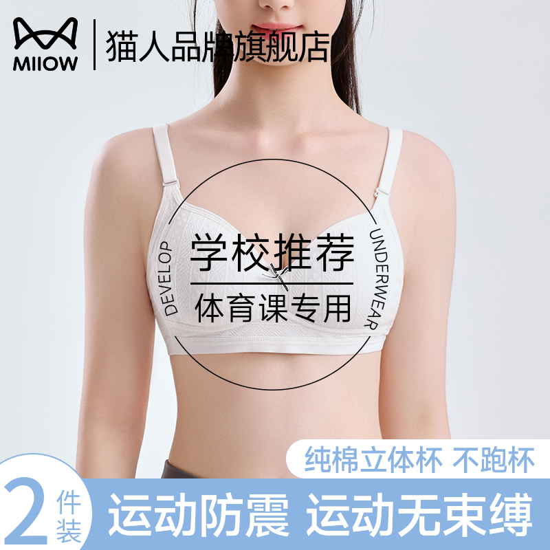 猫人少女青春期初高中生发育内衣运动防震聚拢挺身姿女孩专属文胸