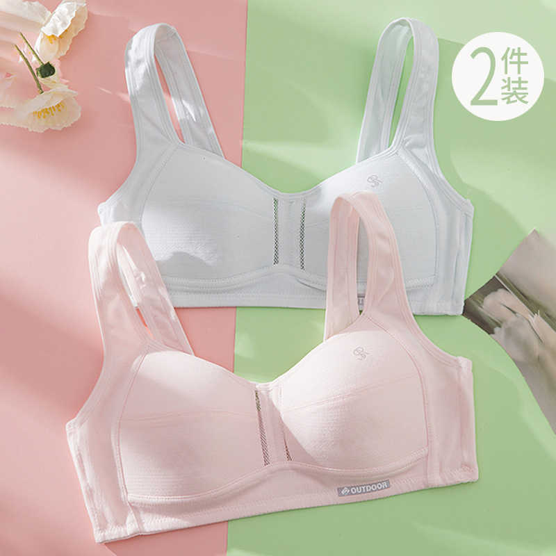 纯棉前扣加大码少女文胸夏季初中高中生学生无海绵青春期发育内衣