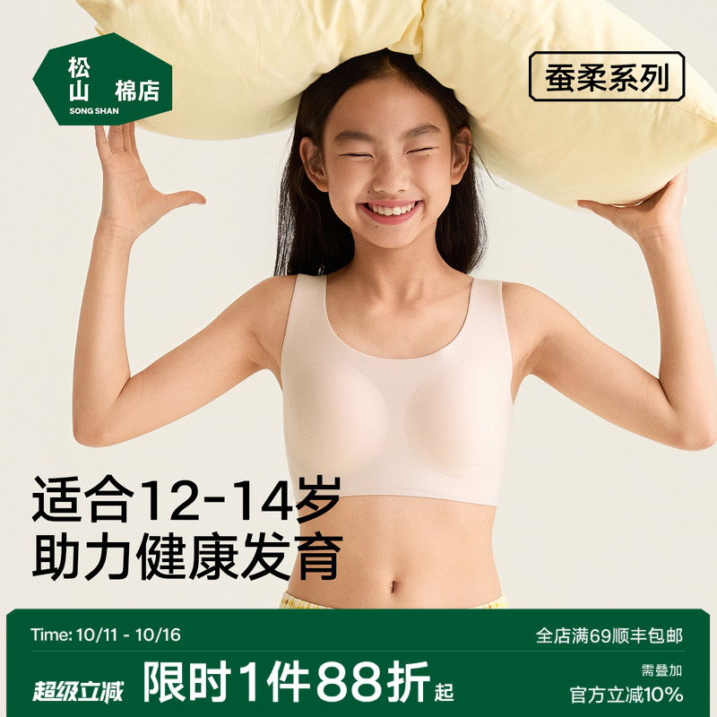 松山棉店一阶段无痕少女文胸100支棉透气亲肤弹力发育内衣背心