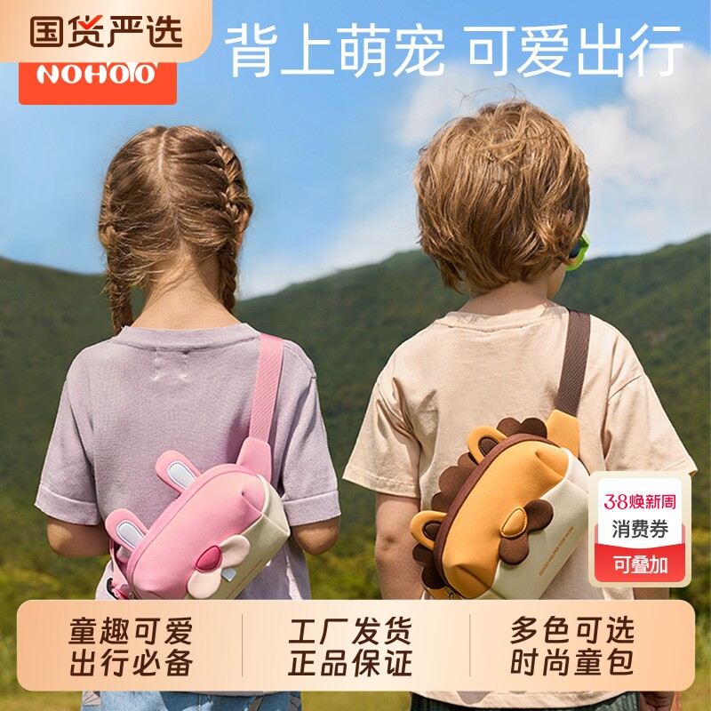 诺狐儿童斜挎包女童可爱腰包男孩外出旅游小背包幼儿园宝宝小挎包