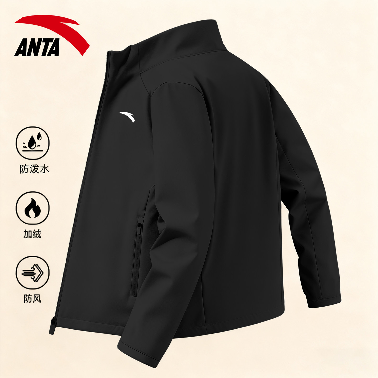 安踏男款外套男士开衫加绒夹克2026春季官方新款加厚立领运动风衣
