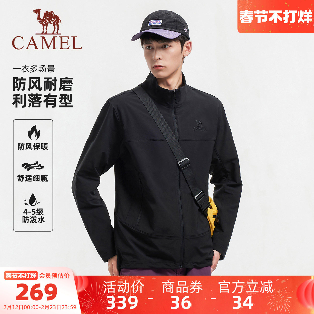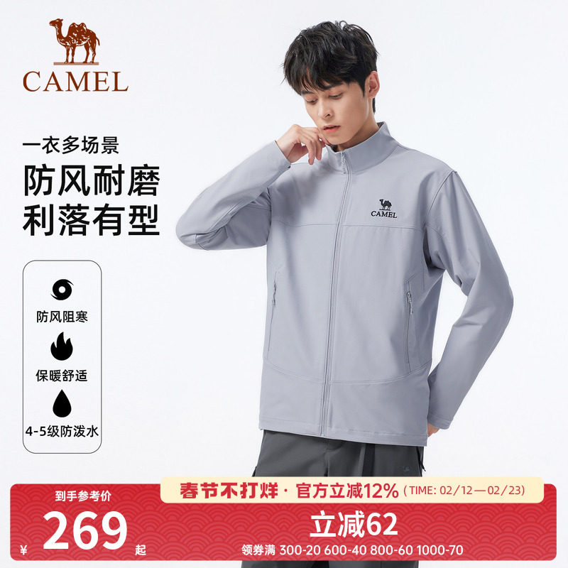 骆驼男装户外软壳冲锋衣徒步男夹克外套加绒防水山系防风立领宽松