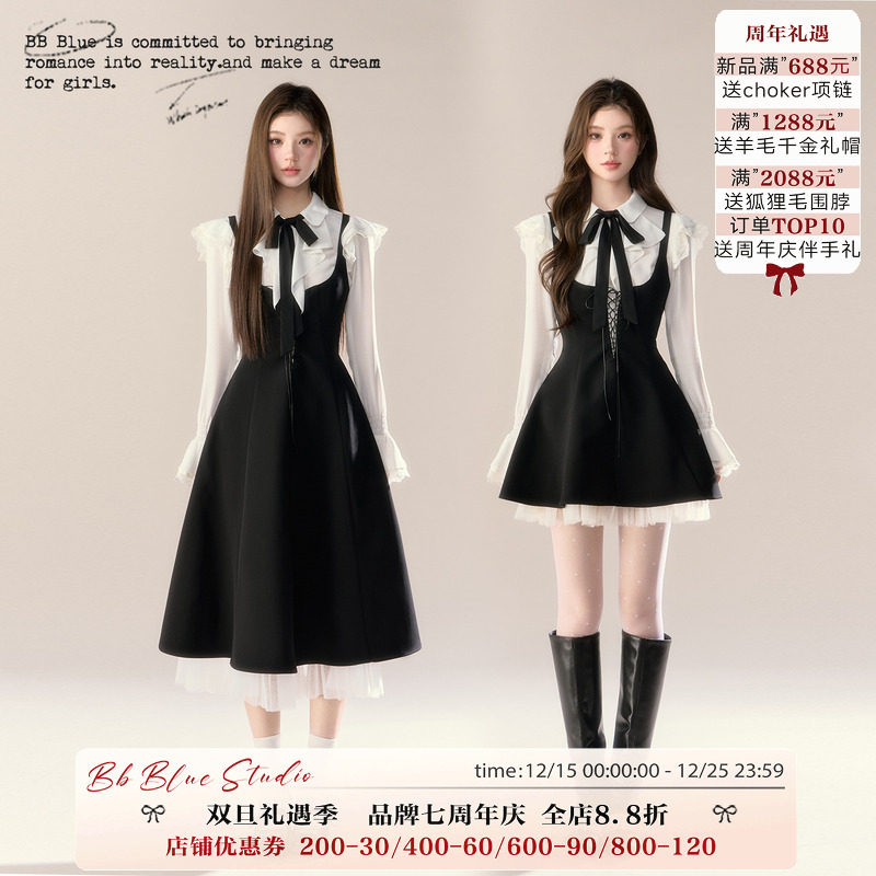 BB BLUE/幸子小姐/巨好看的早秋连衣裙套装法式长袖气质修身衬衫