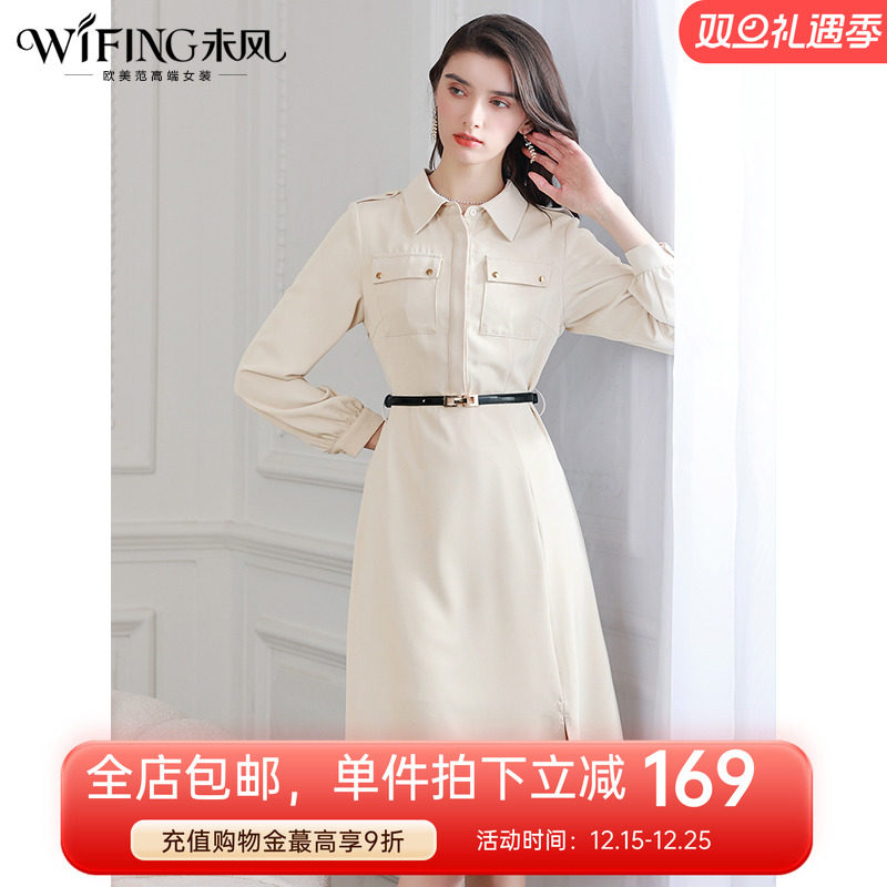 菲梦伊衬衫连衣裙女长袖秋装新款时尚高级简约大方气质收腰中长裙