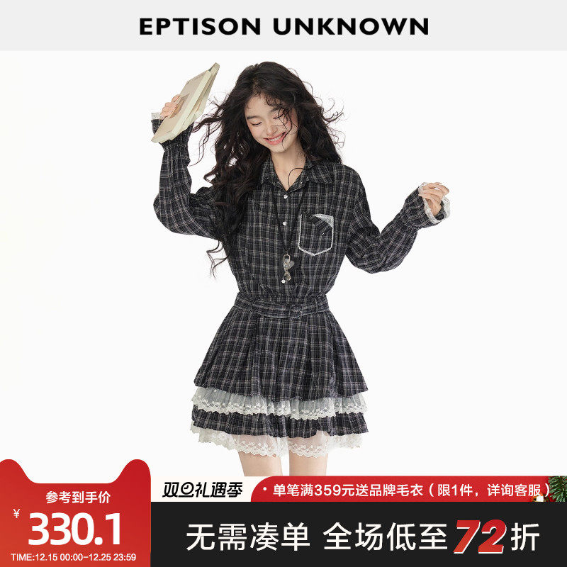EPTISON长袖衬衫连衣裙女2025秋季新款收腰格纹学院风好看百褶裙
