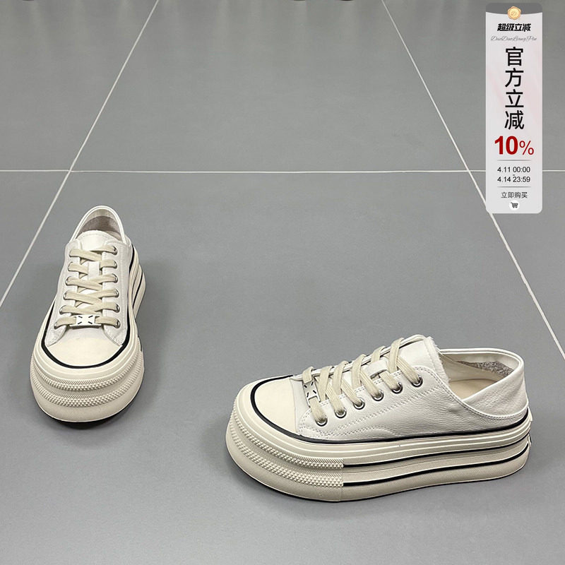 真皮两穿小白鞋女2026春夏新款圆头厚底懒人时尚百搭牛皮休闲板鞋
